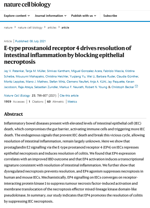E-type prostanoid receptor 4 drives resolution of intestinal inflammation by blocking epithelial necroptosis