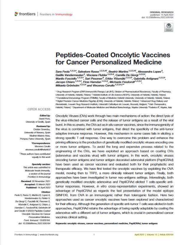 Peptides-Coated Oncolytic Vaccines for Cancer Personalized Medicine