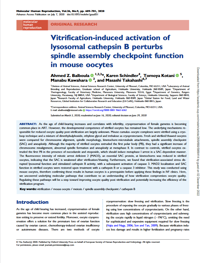 Vitrification-induced activation of lysosomal cathepsin B perturbs spindle assembly checkpoint function in mouse oocytes