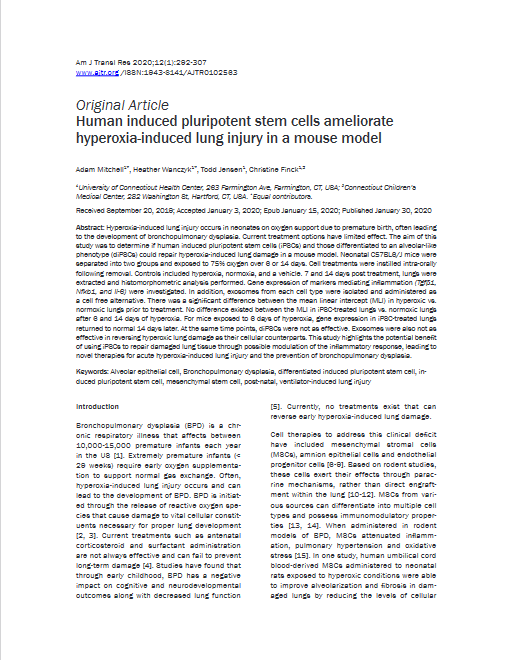 Human induced pluripotent stem cells ameliorate hyperoxia-induced lung injury in a mouse model