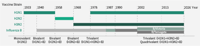 Jedes Jahr werden mehrere verschiedene Grippestämme als Impfstoffkandidaten ausgewählt, und zwar auf der Grundlage von Überwachungsdaten der jüngsten Isolate und der Leistungsfähigkeit der Impfstoffe aus der vorangegangenen Saison. In den letzten Jahrzehnten sind die meisten Influenza-Impfstoffe drei- oder vierwertig und bestehen aus einem H1N1-, einem H3N2- und entweder einem oder zwei Typ-B-Viren (Yamagata- und Victoria-Stamm).