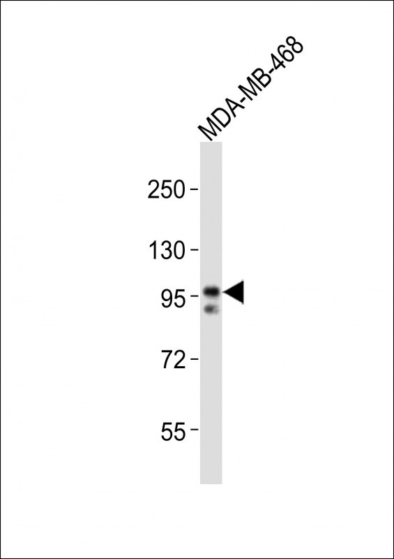 Anti-EZH2 Antibodyat 1:500 dilution + MDA-MB-468 whole cell lysatesLysates/proteins at 20 µg per lane. SecondaryGoat Anti-Rabbit IgG, (H+L), Peroxidase conjugated at 1/10000 dilutionPredicted band size : 85 kDaBlocking/Dilution buffer: 5% NFDM/TBST.