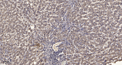 Immunohistochemical analysis of paraffin-embedded human liver cancer. 1, Antibody was diluted at 1:200(4 overnight). 2, Tris-EDTA,pH9.0 was used for antigen retrieval. 3,Secondary antibody was diluted at 1:200(room temperature, 45min).