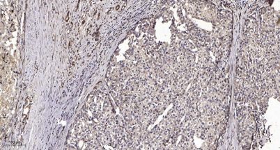 Immunohistochemical analysis of paraffin-embedded human liver cancer. 1, Antibody was diluted at 1:200(4 overnight). 2, Tris-EDTA,pH9.0 was used for antigen retrieval. 3,Secondary antibody was diluted at 1:200(room temperature, 45min).