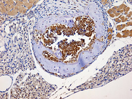 Synthetic peptide made to an internal portion of the mouse protein (within residues 350-400). [Swiss-Prot Q9R207]. |