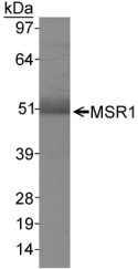 Synthetic peptide made to an internal portion of the human protein (within residues 400-450). [Swiss-Prot P21757] |