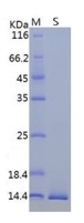 SARS-CoV-2 (COVID-19, 2019-nCoV) ORF8 Recombinant Protein, His Tag on SDS-PAGE under reducing (R) condition. The gel was stained overnight with Coomassie Blue. The purity of the protein is greater than 80%.