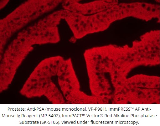 ImmPACT Vector Red AP Substrate Kit produces a magenta reaction product that is crisper and is 2-4 times more sensitive than the original Vector® Red substrate kit (SK-5100). It can be used singly or in combination with other alkaline phosphatase or peroxidase substrates for multiple label applications.