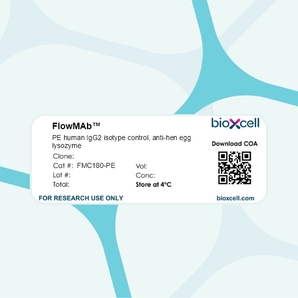 FlowMAb PE human IgG2 isotype control, anti-hen egg lysozyme, Clone: [N/A-CP180], Human, Monoclonal