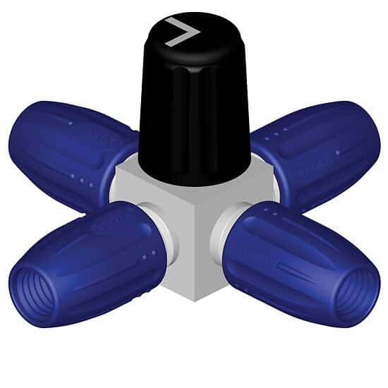 Standard 4-Port manuelles Ventil für 0,5 - 4mm AD Schlauch, 4 x 1/4-28 UNF female, 1,5mm Bohrung