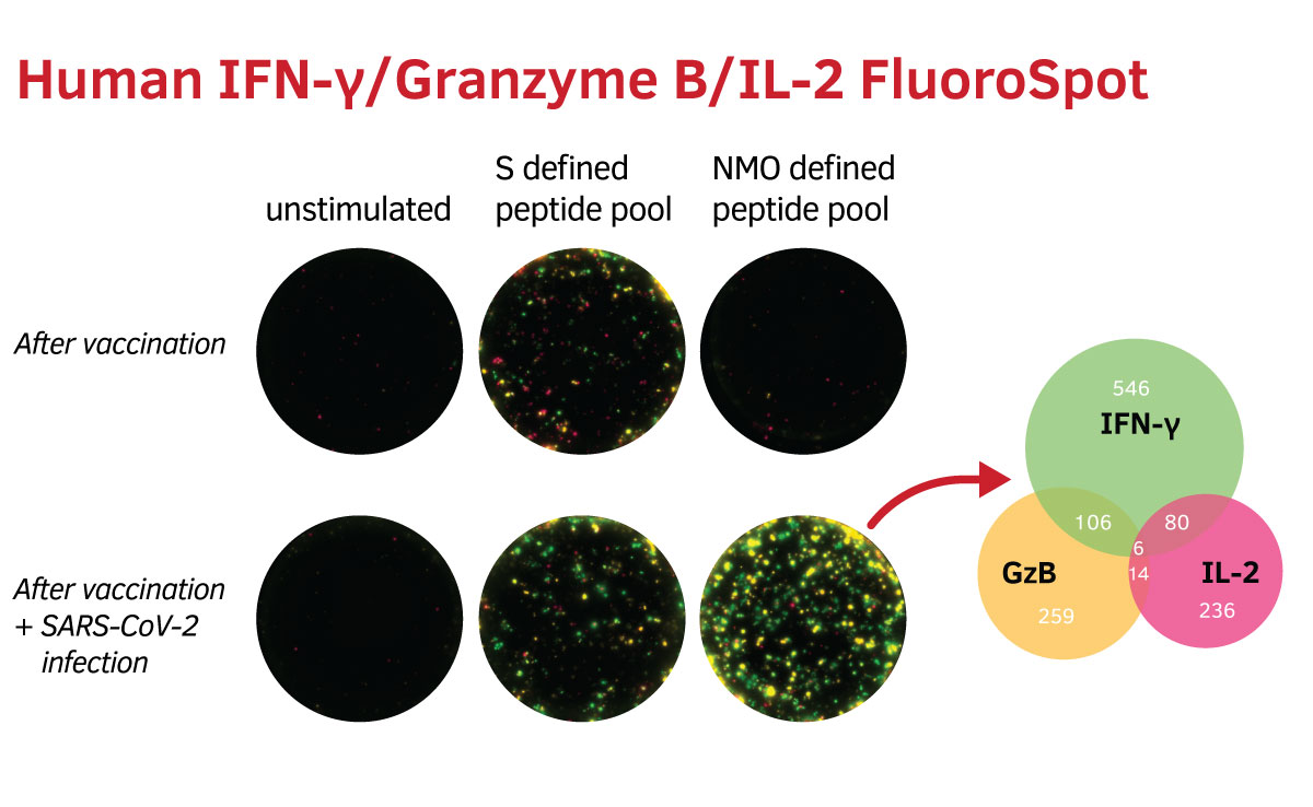 FluoroSpot Path: SARS-CoV-2 (S+NMO) Human IFN-gamma/Granzyme B/IL-2