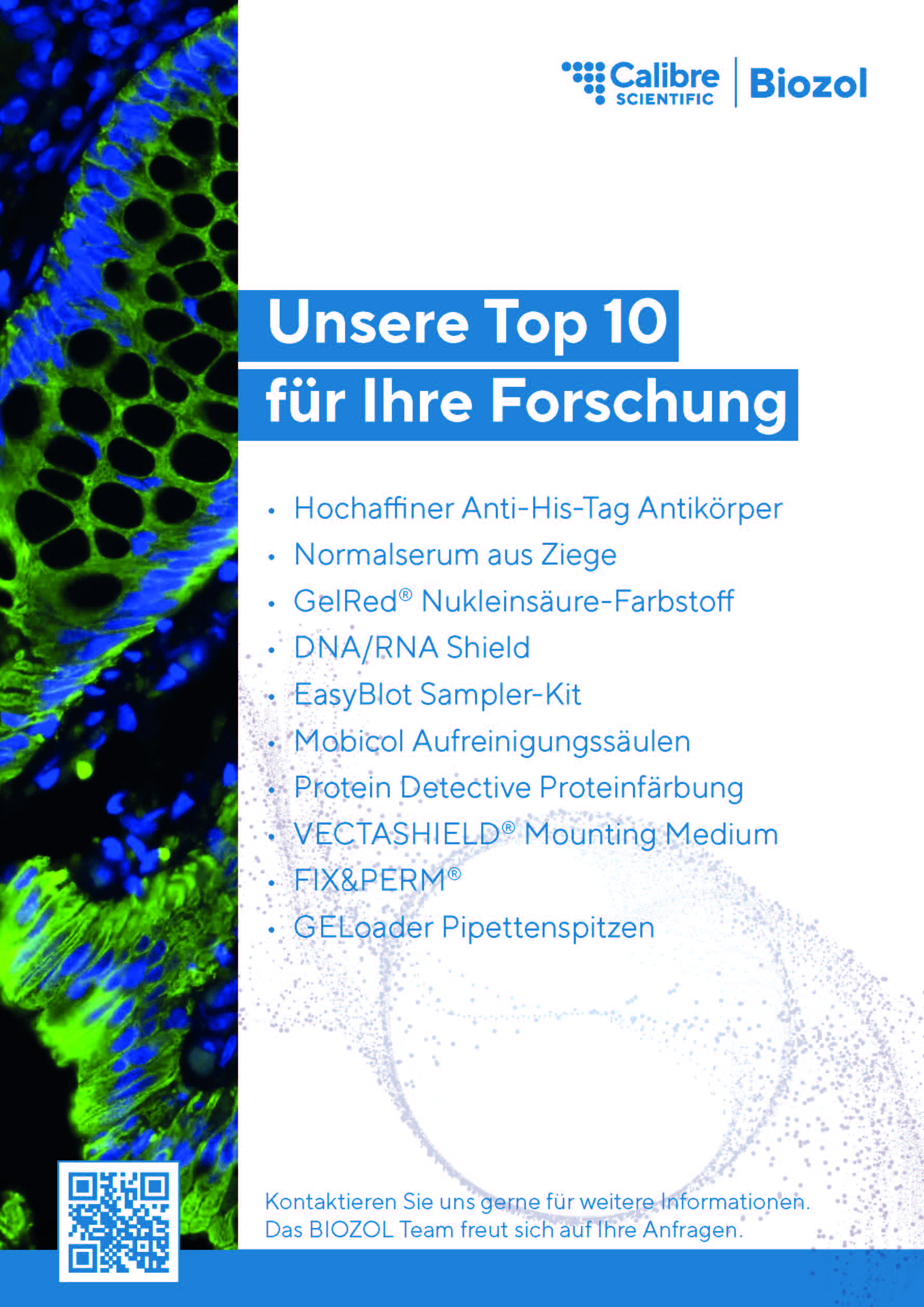 Our Top 10 flyer gives you a quick overview of some of our most successful products that every research lab needs: from our high-affinity Anti-His Tag antibody, to our validated blocking sera, to DNA/RNA Shield for stable sample transport, to our new ultra-fast Coomassie stain, the Protein Detective.