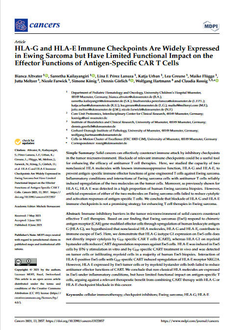 HLA-G and HLA-E Immune Checkpoints Are Widely Expressedin Ewing Sarcoma but Have Limited Functional Impact on theEffector Functions of Antigen-Specific CAR T Cells
