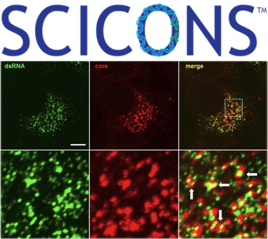 SCICONS antibodies are used to detect dsRNA intermediates of a wide range of viruses, including chikungunya, dengue, hepatitis, rabies, rhinovirus, polio, swine fever and more. Originally developed in 1990, SCICONS antibodies have become the gold standard in double-stranded RNA detection, with hundreds of peer-reviewed citations characterizing their use in a diverse range of applications.