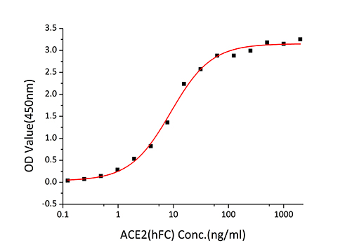Immobilized SARS-CoV-2 Spike RBD(L452R,T478K) at 2µg/mL (100µL/well) can bind Human ACE2 (Catalog: RP01275) with a linear range of 0.1-8.96 ng/mL.