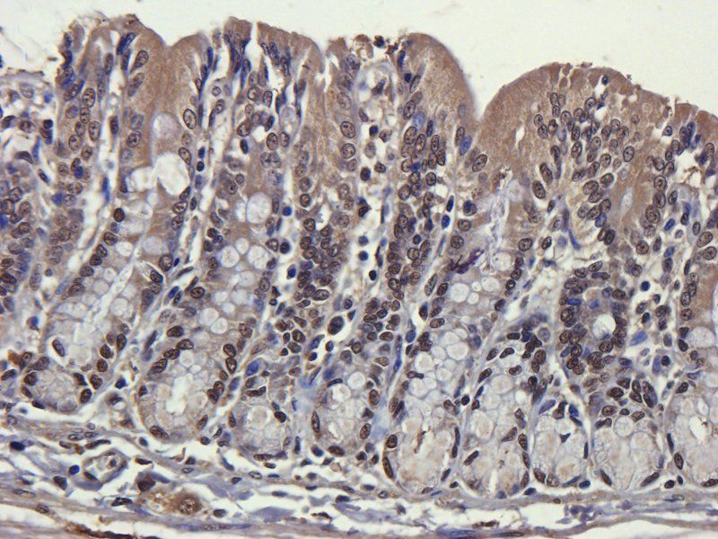 Immunohistochemical staining of rat large intestines tissue using anti-ORM1 (2.5 ug/ml)