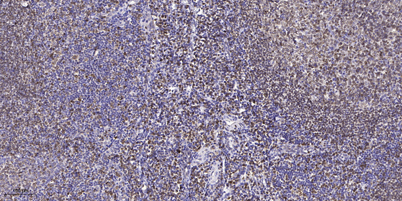 Immunohistochemical analysis of paraffin-embedded human tonsil. 1, Antibody was diluted at 1:200(4 overnight). 2, Tris-EDTA,pH9.0 was used for antigen retrieval. 3,Secondary antibody was diluted at 1:200(room temperature, 45min).