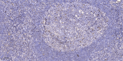 Immunohistochemical analysis of paraffin-embedded human tonsil. 1, Antibody was diluted at 1:200(4 overnight). 2, Tris-EDTA,pH9.0 was used for antigen retrieval. 3,Secondary antibody was diluted at 1:200(room temperature, 45min).
