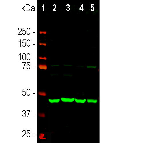 Immunohistochemistry: 1:500 Immunofluorescent: 1:500 Immunohistochemistry: 1:500 Western Blot: 1:2,000 |