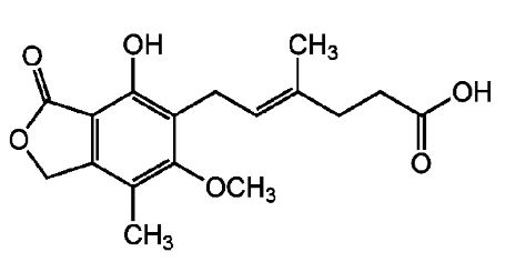 Mycophenolic acid, CAS [[24280-93-1]] |