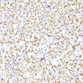 Immunohistochemistry of paraffin-embedded human liver using CYP3A4 antibody (18-699) at dilution of 1:100 (40x lens).