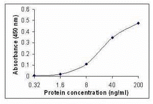 Recombinant protein as test antigen. Rabbit polyclonal anti-MIP 1b IgG as capture antibody, Affinity-Purified MIP 1b IgY-Biotin as detection antibody.