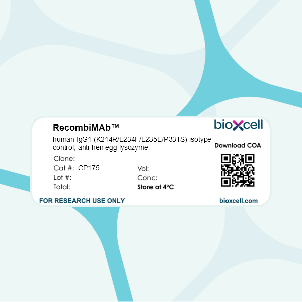 RecombiMAb human IgG1 (K214R/L234F/L235E/P331S) isotype control, anti-hen egg lysozyme, Clone: [N/A-CP175], Human, Recombinant