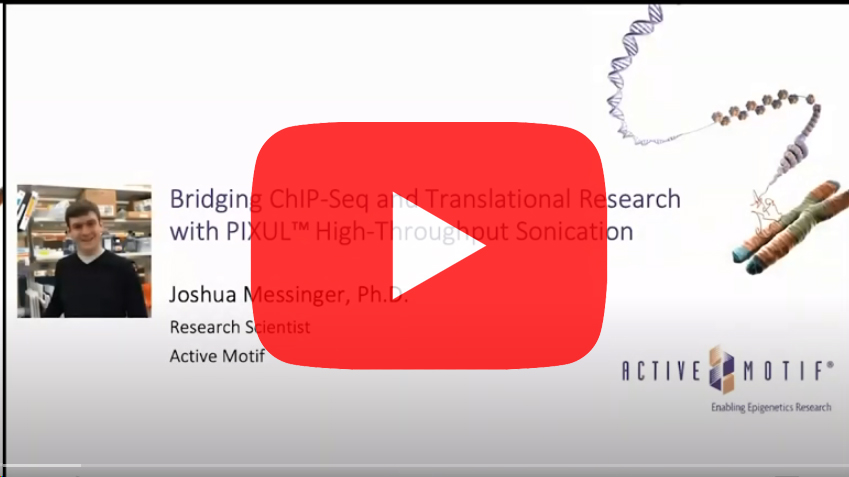 In dieser Episode der Active Motif Webinar-Reihe spricht Dr. Joshua Messinger, Wissenschaftler in der Forschung und Entwicklung, darüber, wie er den Einsatz von automatisierten Beschallungsgeräten, unserem PIXUL High Throughput Sonicator, zur Erhöhung des Durchsatzes und zur Anwendung von epigenetischen Analyse- und Forschungstechniken, wie ChIP-Seq, einsetzen konnte und dies mit der Translationalen Forschung und der Untersuchung klinischer Proben in einer Weise verbinden konnte, die vorher nicht möglich war.